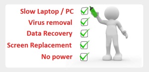Whatever the problem is with your computer - whether it be software, hardware, a virus, spyware or something else - we aim to repair it for you at an affordable cost. If, for some reason we are unable to then you will not be charged.
